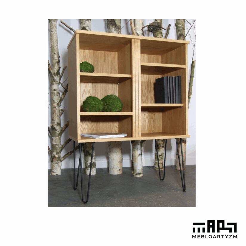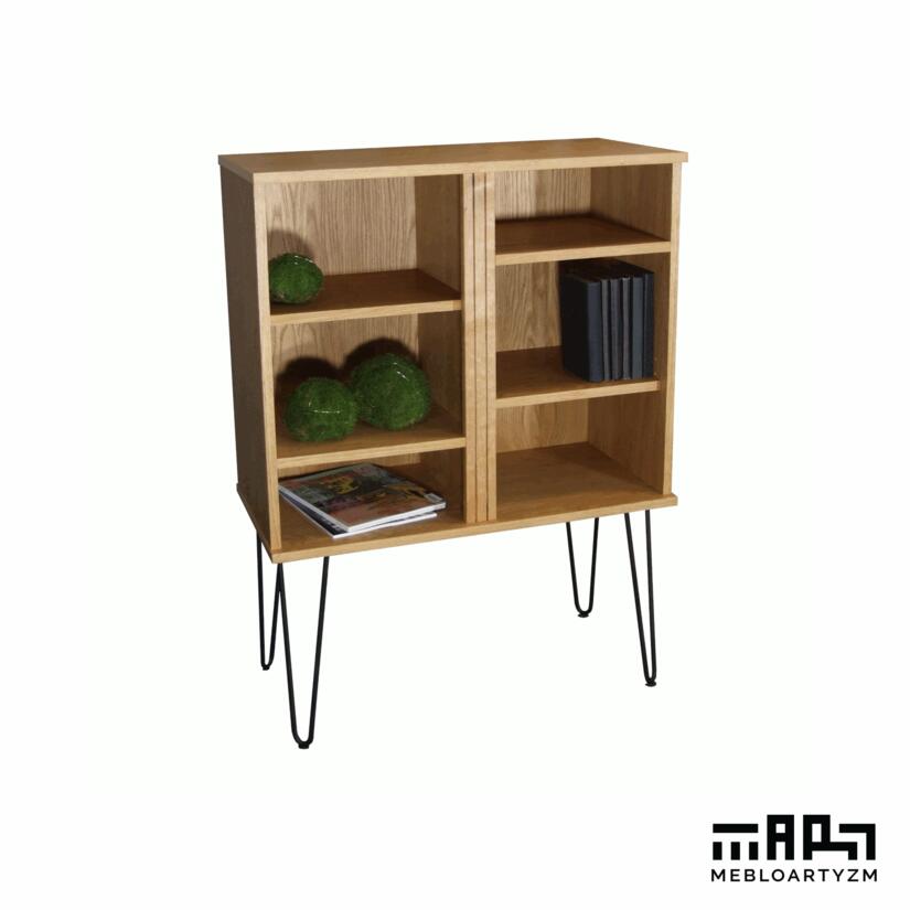 Ten zgrabny regał zaprojektowaliśmy jako uzupełnienie kolekcji dla komody K6. Został zaprojektowany z uwzględnieniem identycznych detali i materiałów.