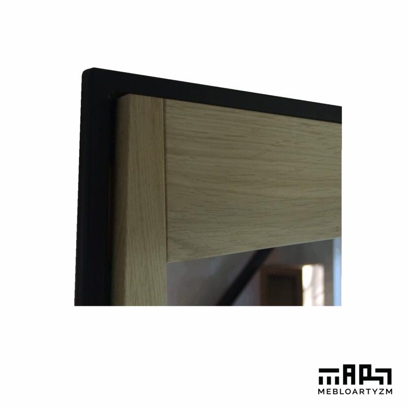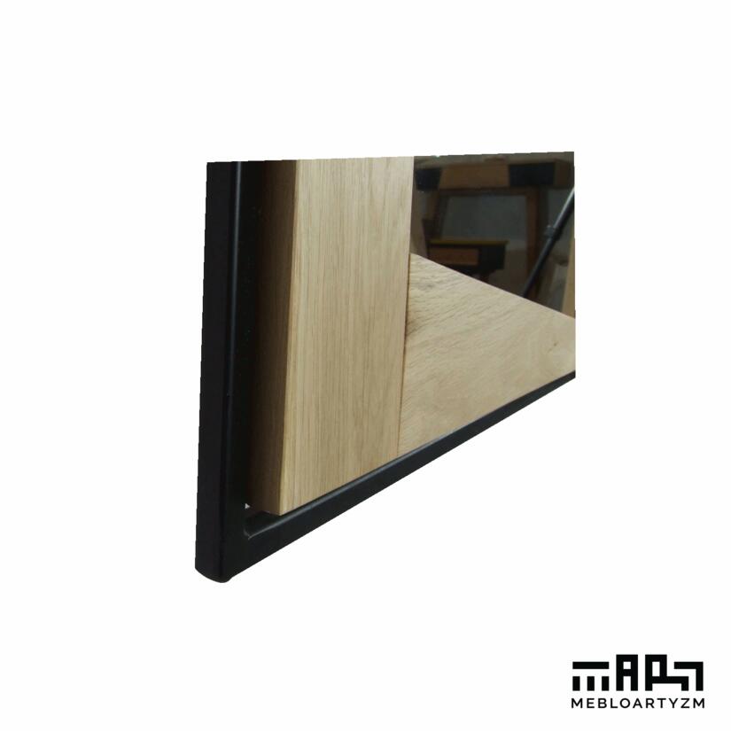 Mamy i większe lustro, do przedpokoju, garderoby, może salonu. Ten model poza połączeniem metalu z drewnem zaskakujemy również kształtem lustra. Poza funkcjonalnością jest wyjątkowyą dekoracją ściany